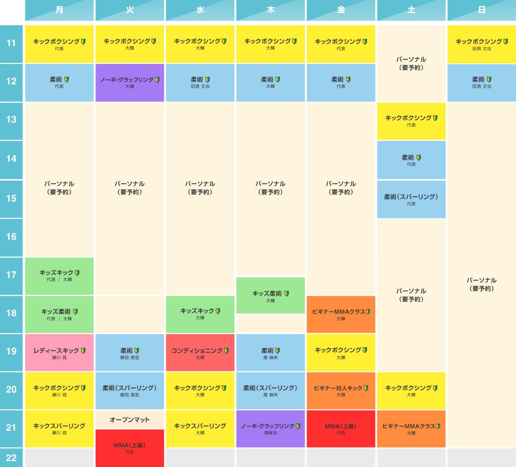 ●未経験でMMAクラスの体験希望の方は金曜18時・土曜21時のビギナーMMAで受け付けております(経験者の方はお問い合わせください)